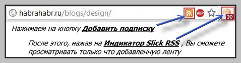 После этого кликая левой кнопкой мышки на Индикатор Slick RSS, вы попадете в читалку Slick RSS, только что добавленная подписка будет уже там. Для удобства, перемещаясь по сайтам, на которых вы уже подписаны на RSS-ленты новостей, кнопка Добавить подписку меняет свой цвет с оранжевого на серый.